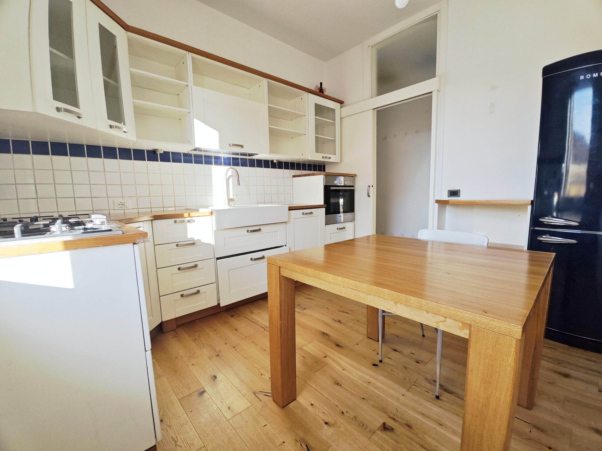 FERROVIERI: al piano primo di una piccola palazzina Liberty ristrutturata, luminoso bicamere composto da ingresso, cucina abitabile, ampio soggiorno, due camere matrimoniali, bagno finestrato, balcone e terrazzo. L’ appartamento dispone inoltre di un vano lavanderia al piano mezzanino e di un posto auto copertoal piano terra.
